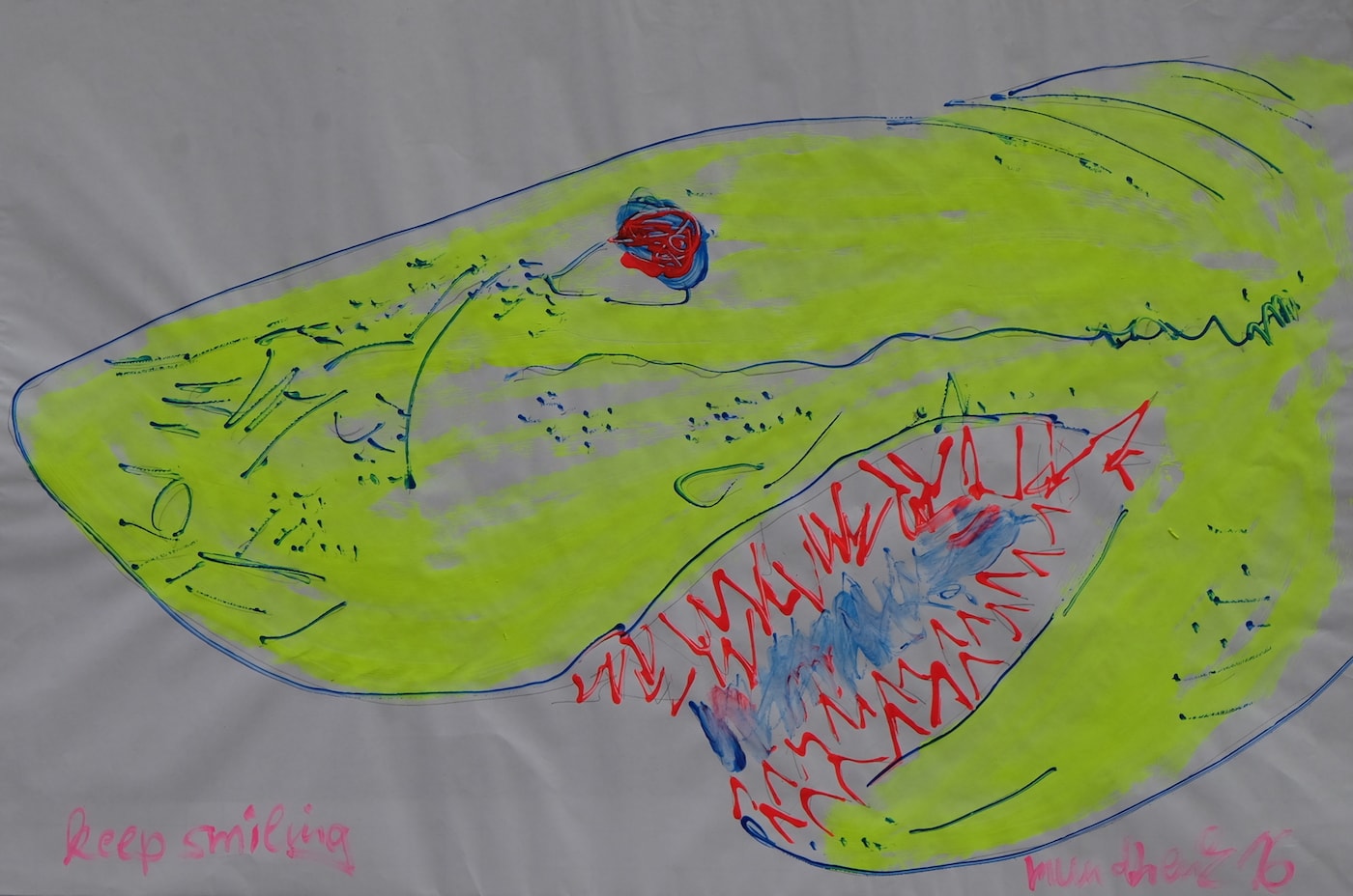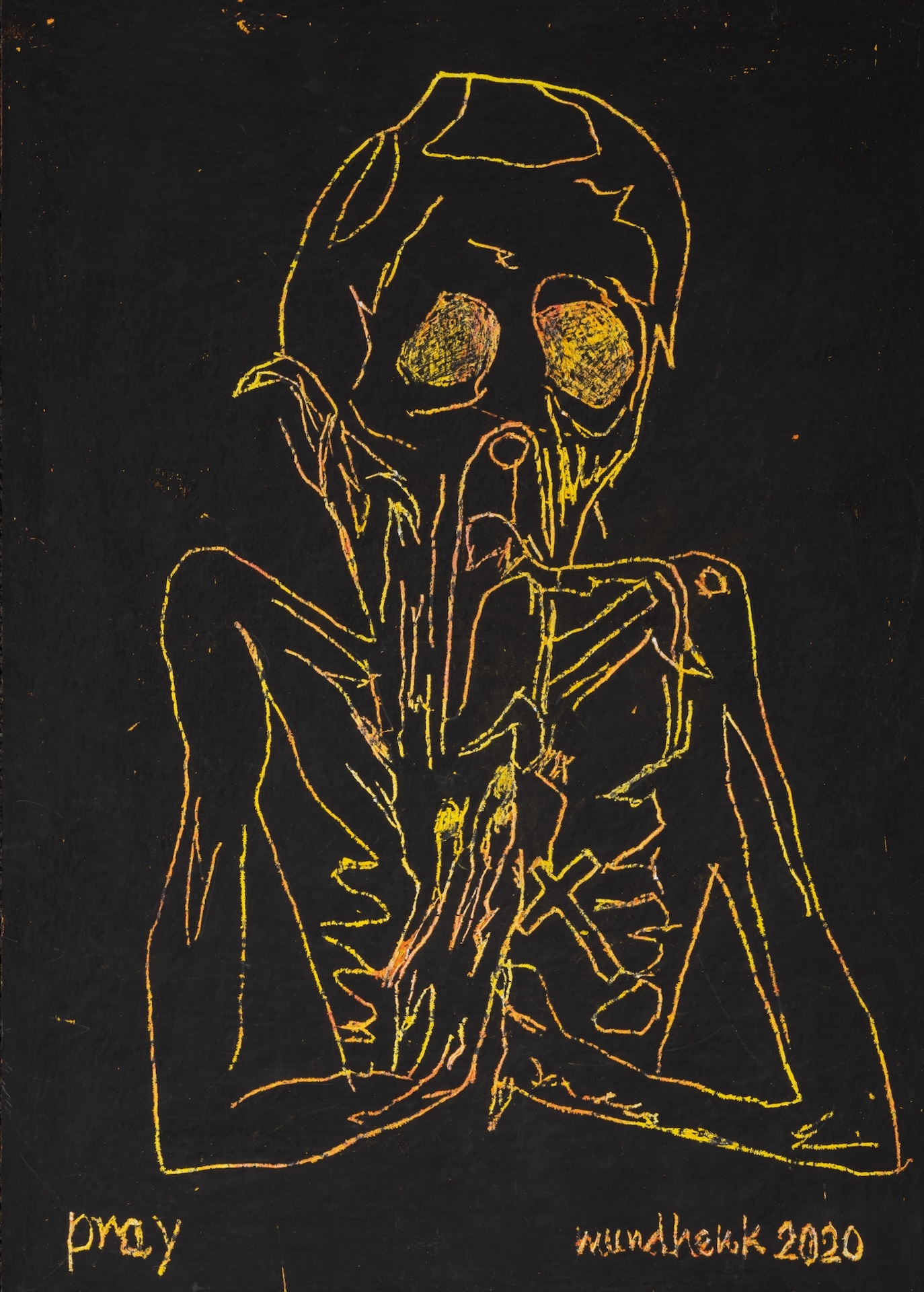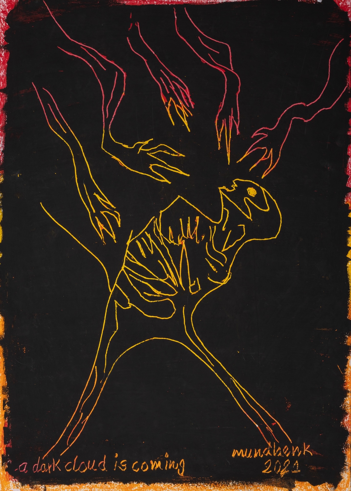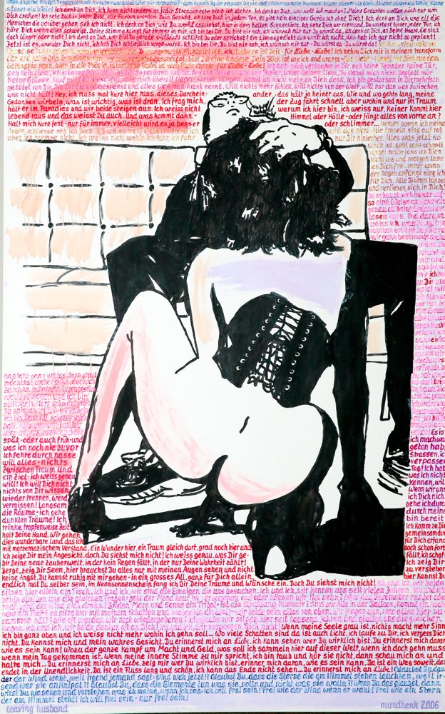 Darüber hinaus widmet sich mundhenk auch tiefergehenden Themen wie Krankheit, Tod und Hoffnung, wo er einfühlsam den Krebstod seiner Eltern in berührenden „krassen“ Bildern verarbeitet hat. Aber auch gegensätzlich das Thema suicide ironisch in verschiedenen Zeichnungen übersetzt. Auch Filmszenen werden in seinen Werken festgehalten, wodurch er Momente aus der Kinowelt einfängt und in seinen unverwechselbaren Stil überträgt.