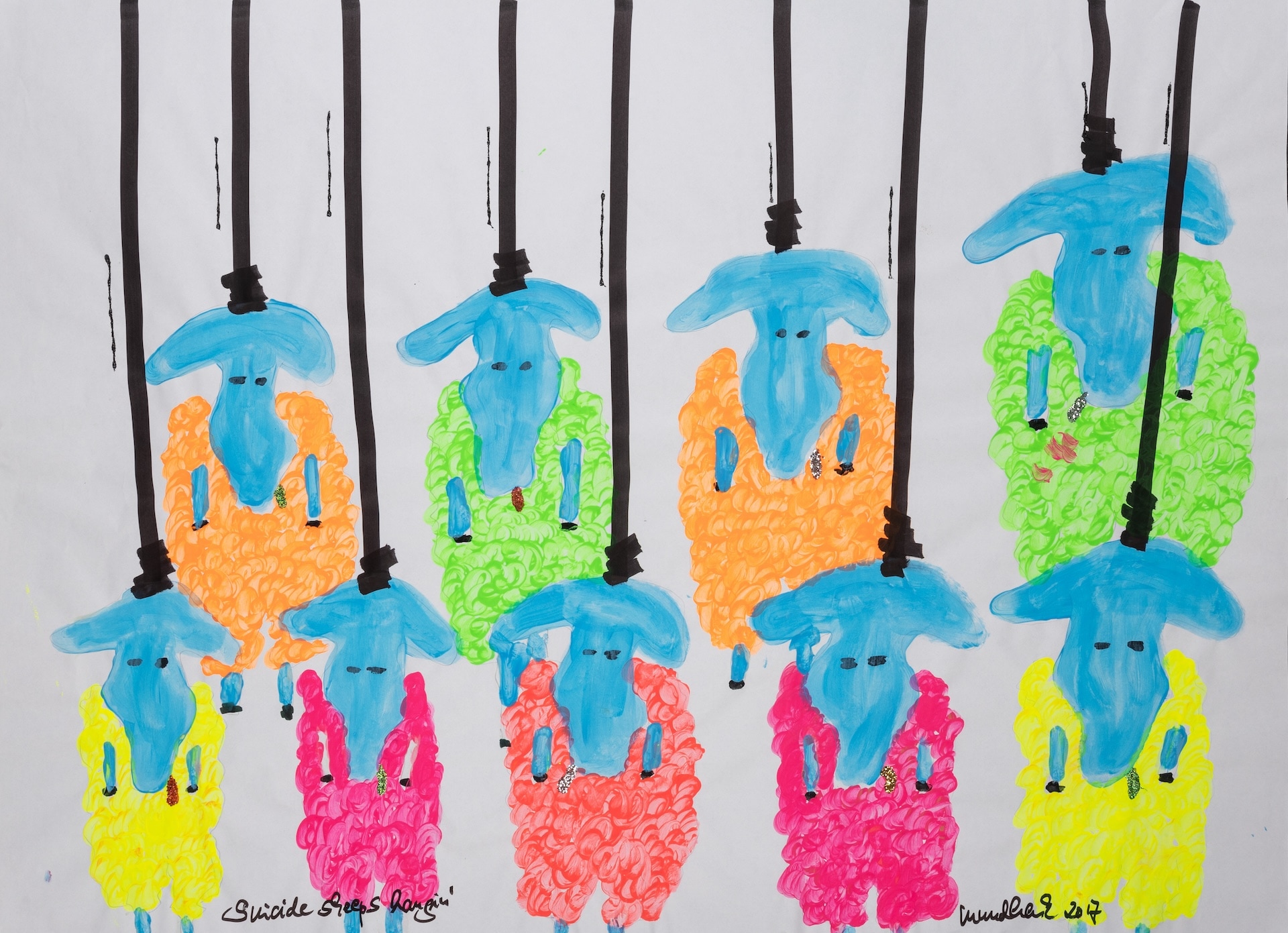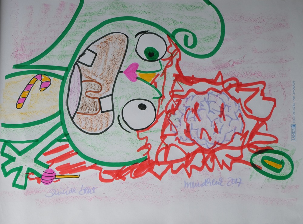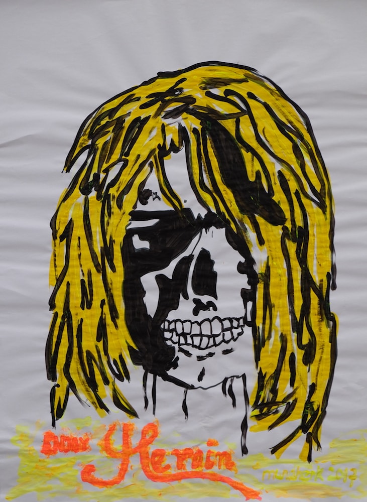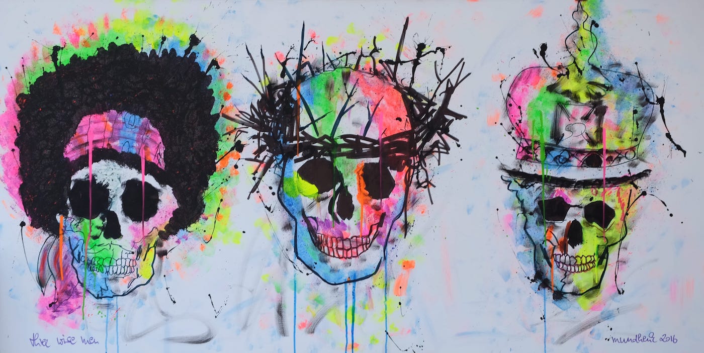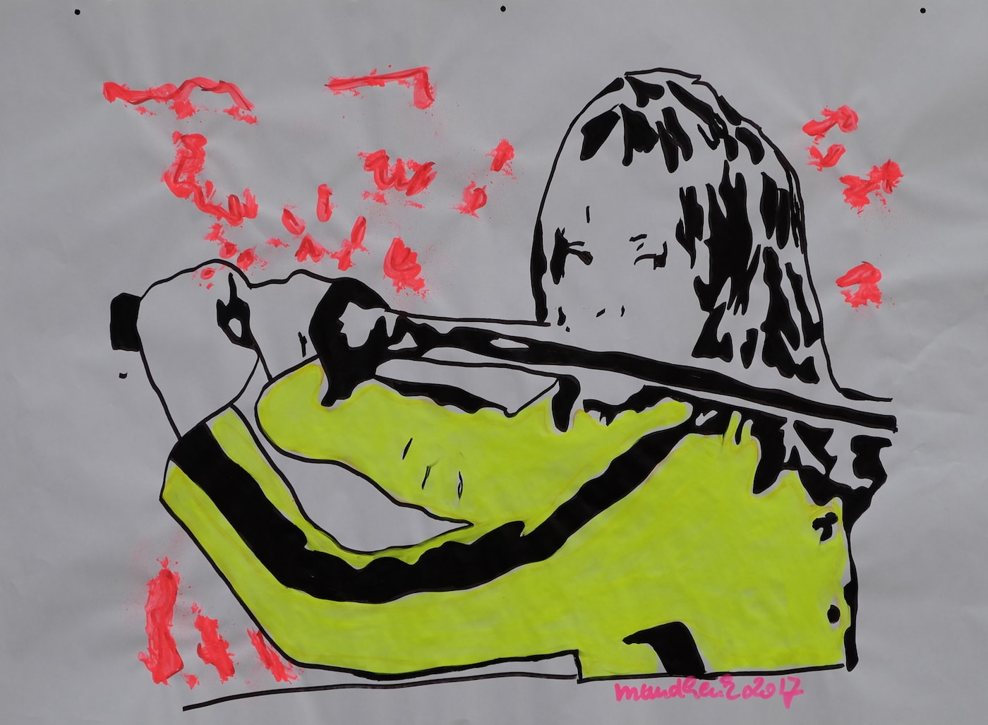 Darüber hinaus widmet sich mundhenk auch tiefergehenden Themen wie Krankheit, Tod und Hoffnung, wo er einfühlsam den Krebstod seiner Eltern in berührenden „krassen“ Bildern verarbeitet hat. Aber auch gegensätzlich das Thema suicide ironisch in verschiedenen Zeichnungen übersetzt. Auch Filmszenen werden in seinen Werken festgehalten, wodurch er Momente aus der Kinowelt einfängt und in seinen unverwechselbaren Stil überträgt.