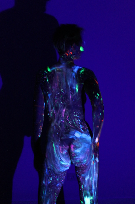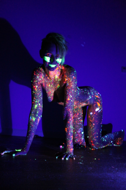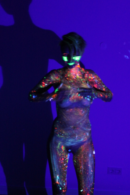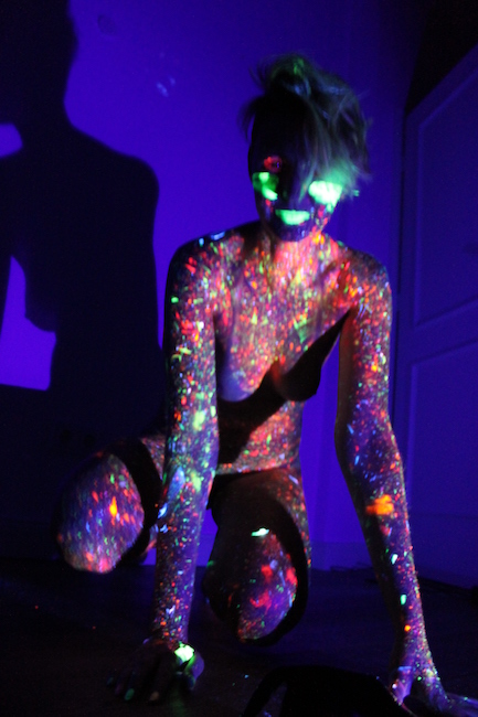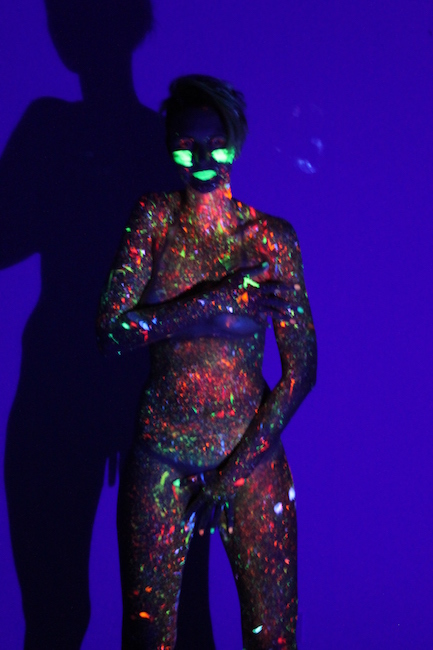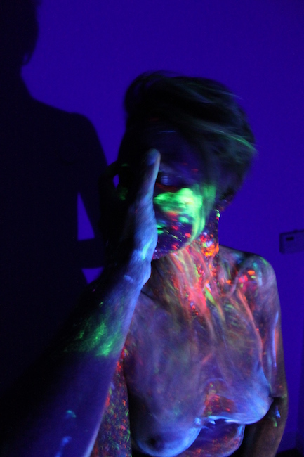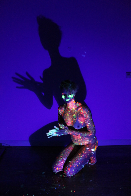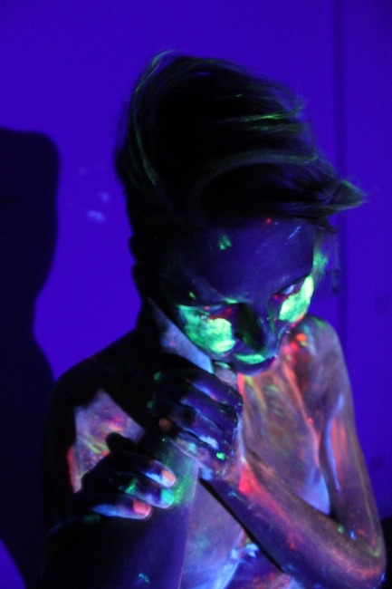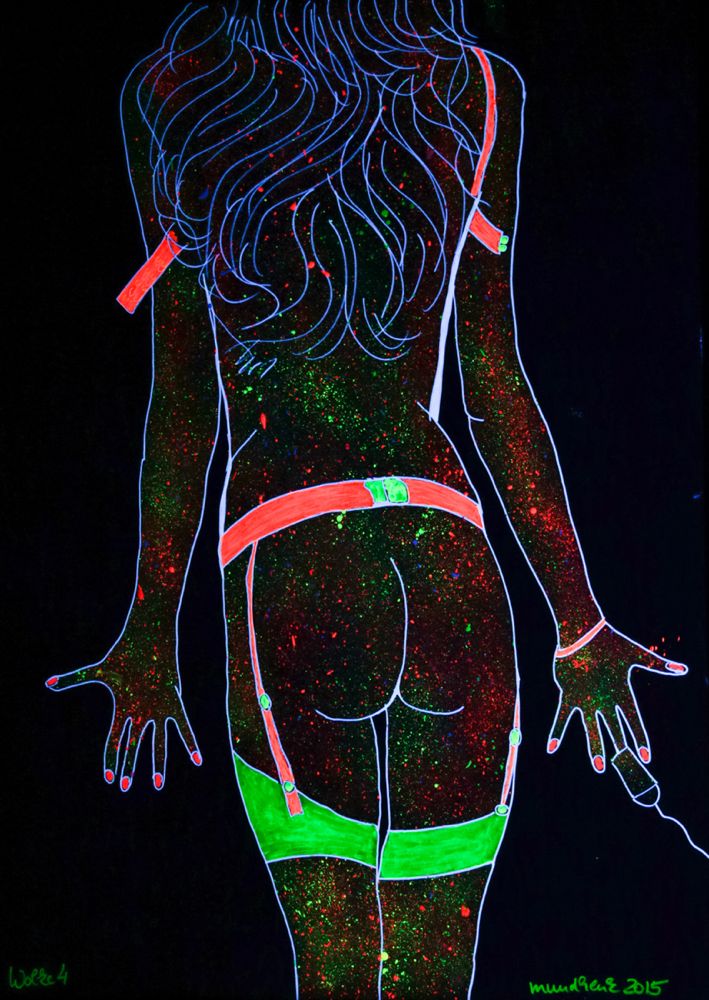 mundhenk ist neben seinen Acryl Schwarzlicht Werken bekannt für seine außergewöhnlichen Live-Acts bei Ausstellungen, bei denen er Besucher in eine Welt der Fantasie und des Staunens entführt. Ein Höhepunkt seiner Shows sind die Schwarzlicht-Engelsflügel, bei denen Besucher Fotos von sich selbst mit den leuchtenden Flügeln machen können. Darüber hinaus die Live-Act-Körperbemalungen, bei denen das menschliche Körperobjekt selbst zur Kunst wird und der Besucher die Entstehung live mitverfolgen kann. Hierbei erleben die Betrachter zwei Wahrnehmungen: einmal im normalen Licht und einmal zusätzlich im faszinierenden Schein des Schwarzlichts.