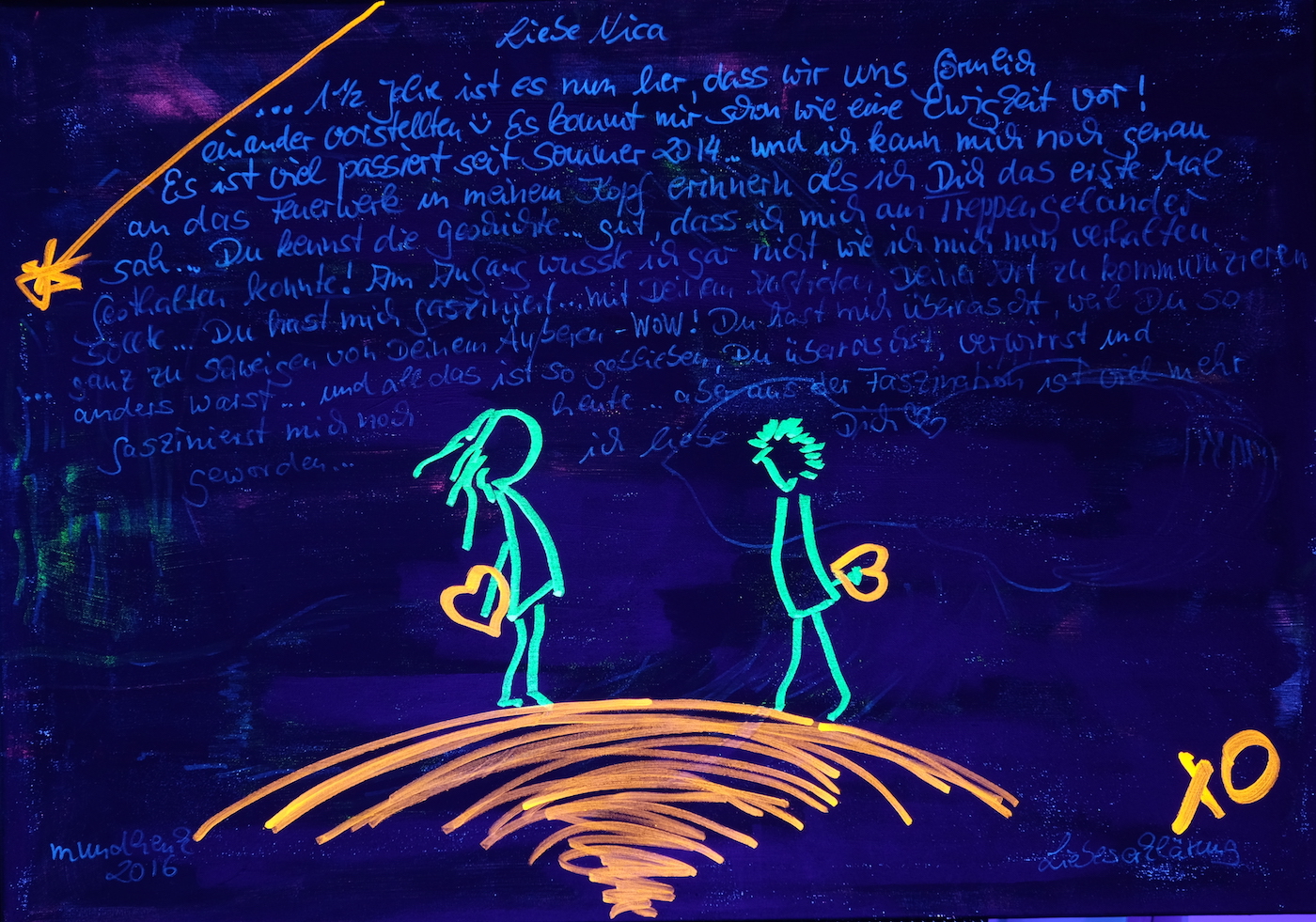 Seine künstlerische Reise führte ihn zur Faszination der Schwarzlichtkunst und der Acrylmalerei. Seine Werke zeichnen sich durch ihre Farbenpracht, ihre Effekte und ihre ästhetische Tiefe aus, die eine mystisch-elegante Stimmung erzeugen.